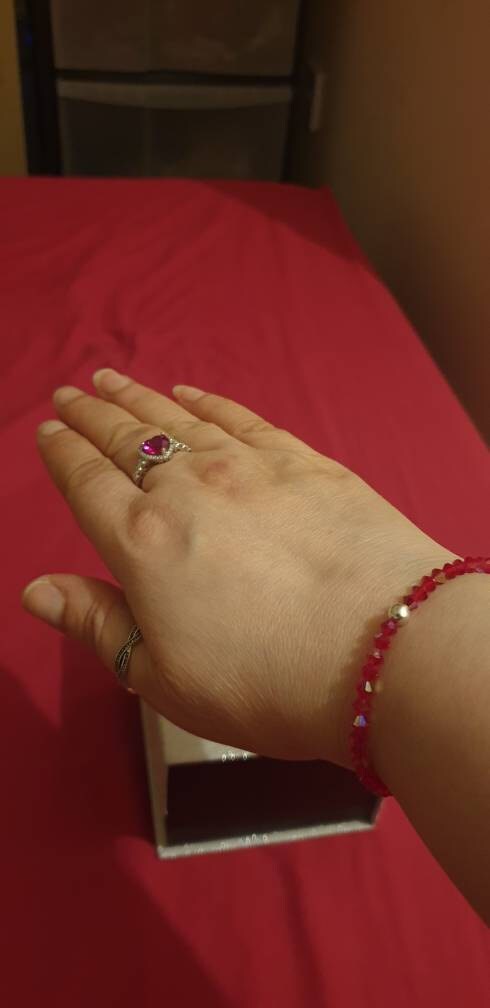 Red AB crystal stretch bracelet with Sterling Silver and 14K Gold Fill bead, diamante or No metal accent bead, I named it "Siam AB sparkle"