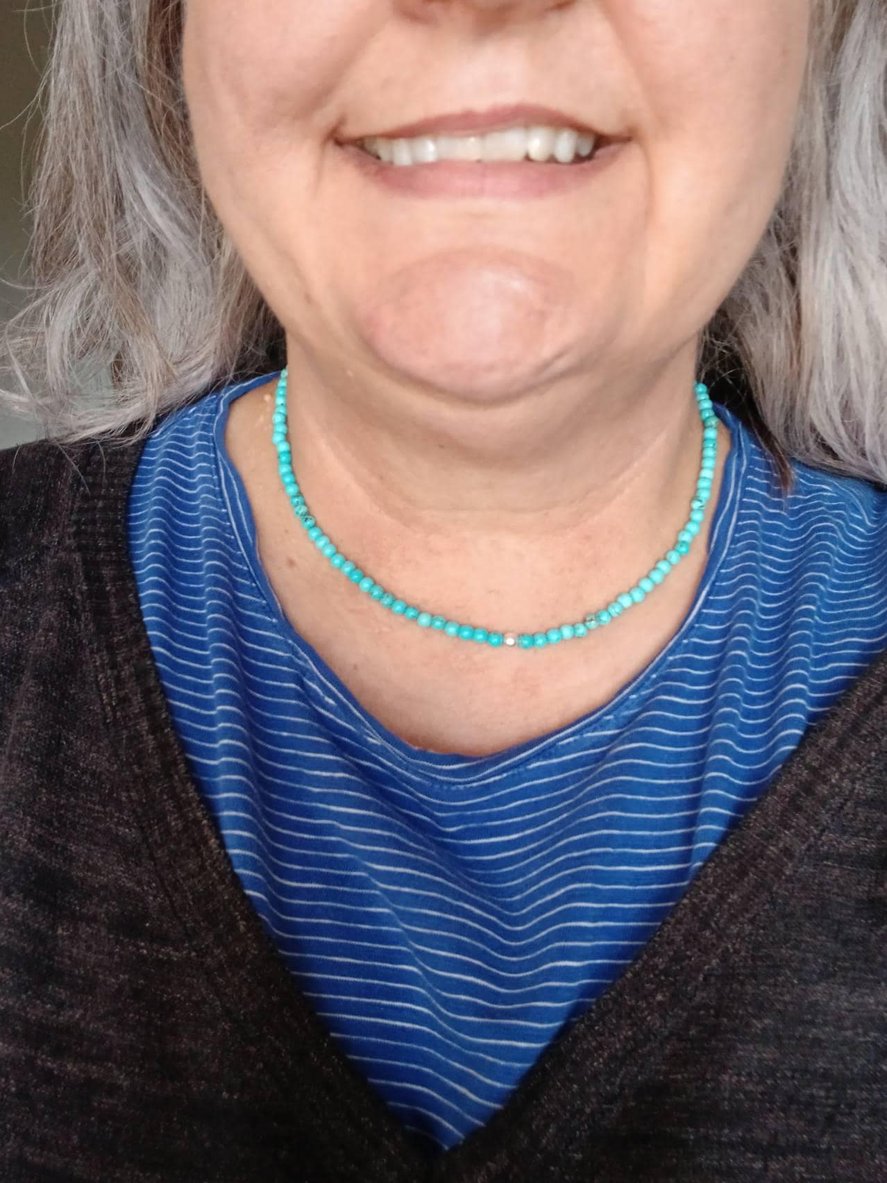 Handmade Turquoise choker necklace in Sterling Silver or 14K Gold Fill ; I named it " Simply Turquoise "