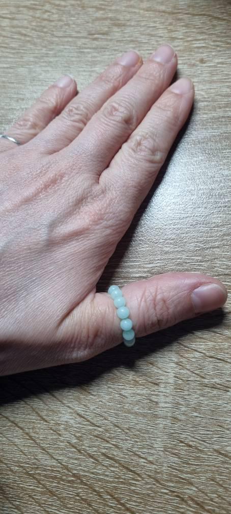 Aqua green Jade gemstone bead stretch ring with Sterling Silver, 14K Gold Fill or no metal accent bead. I named it "Peace"