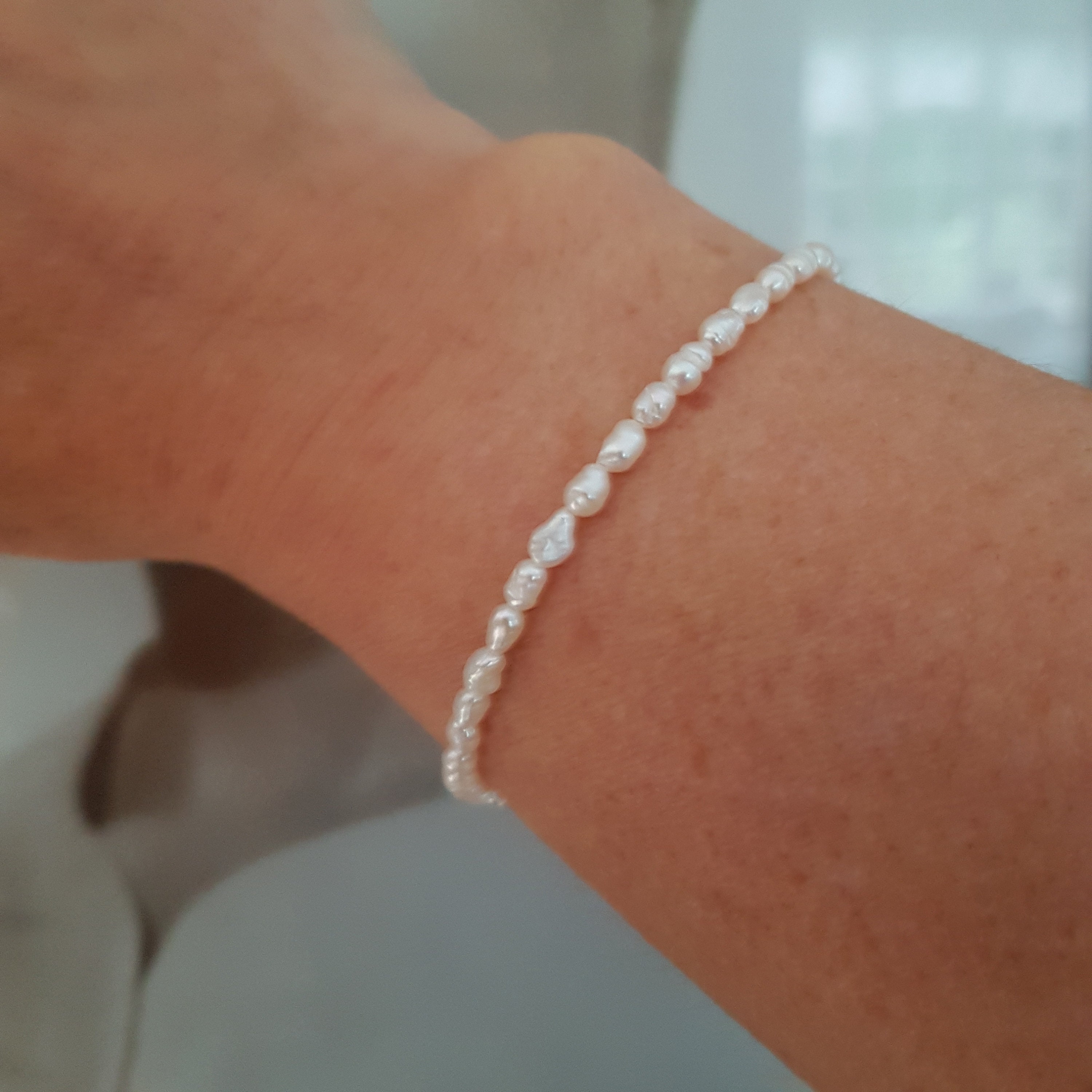 Tiny Freshwater Pearl bracelet in Sterling Silver or 14K Gold fill ; I named it "Cupid"