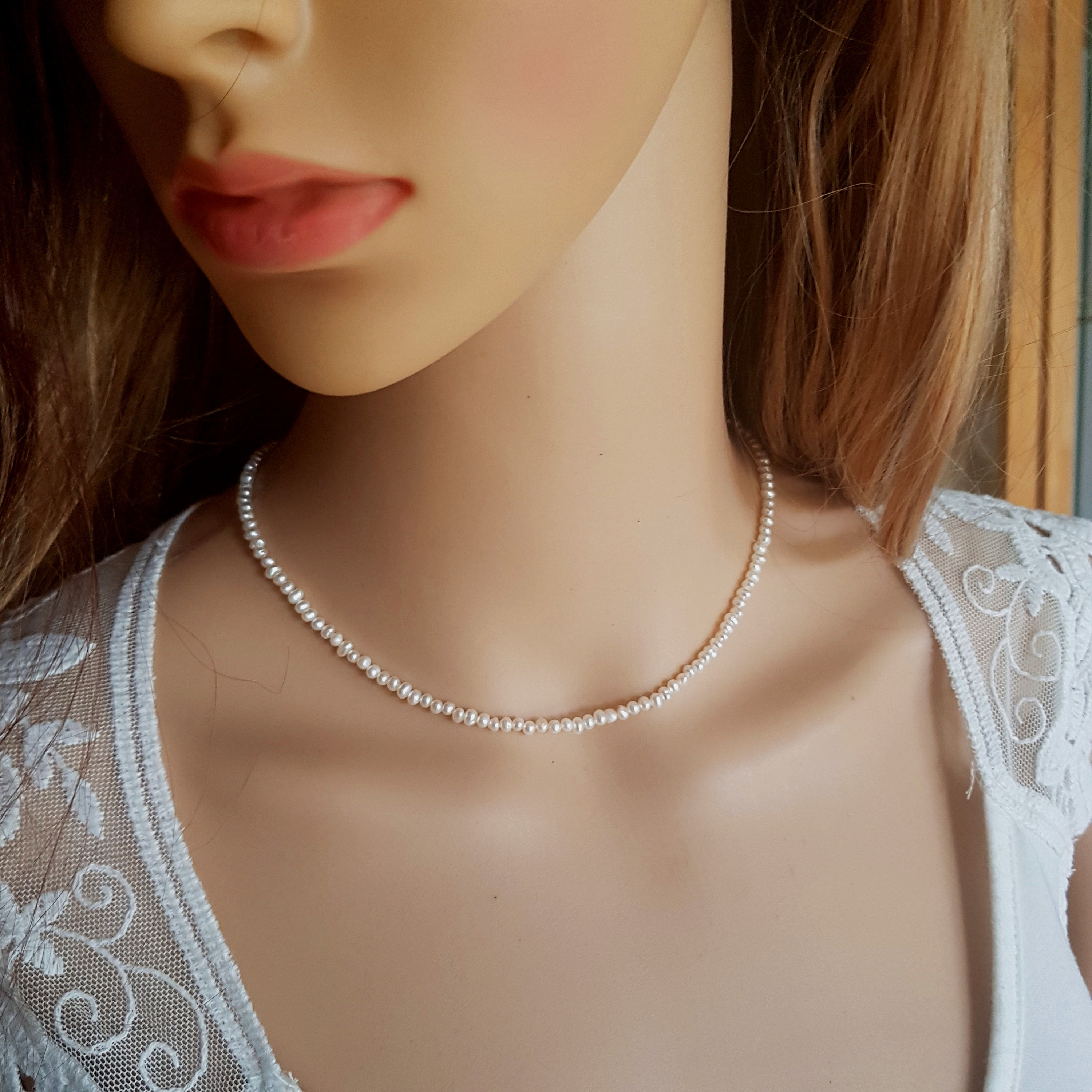 Tiny Freshwater seed Pearl necklace or choker in Sterling Silver or 14K Gold Fill ; I named it "Angel"