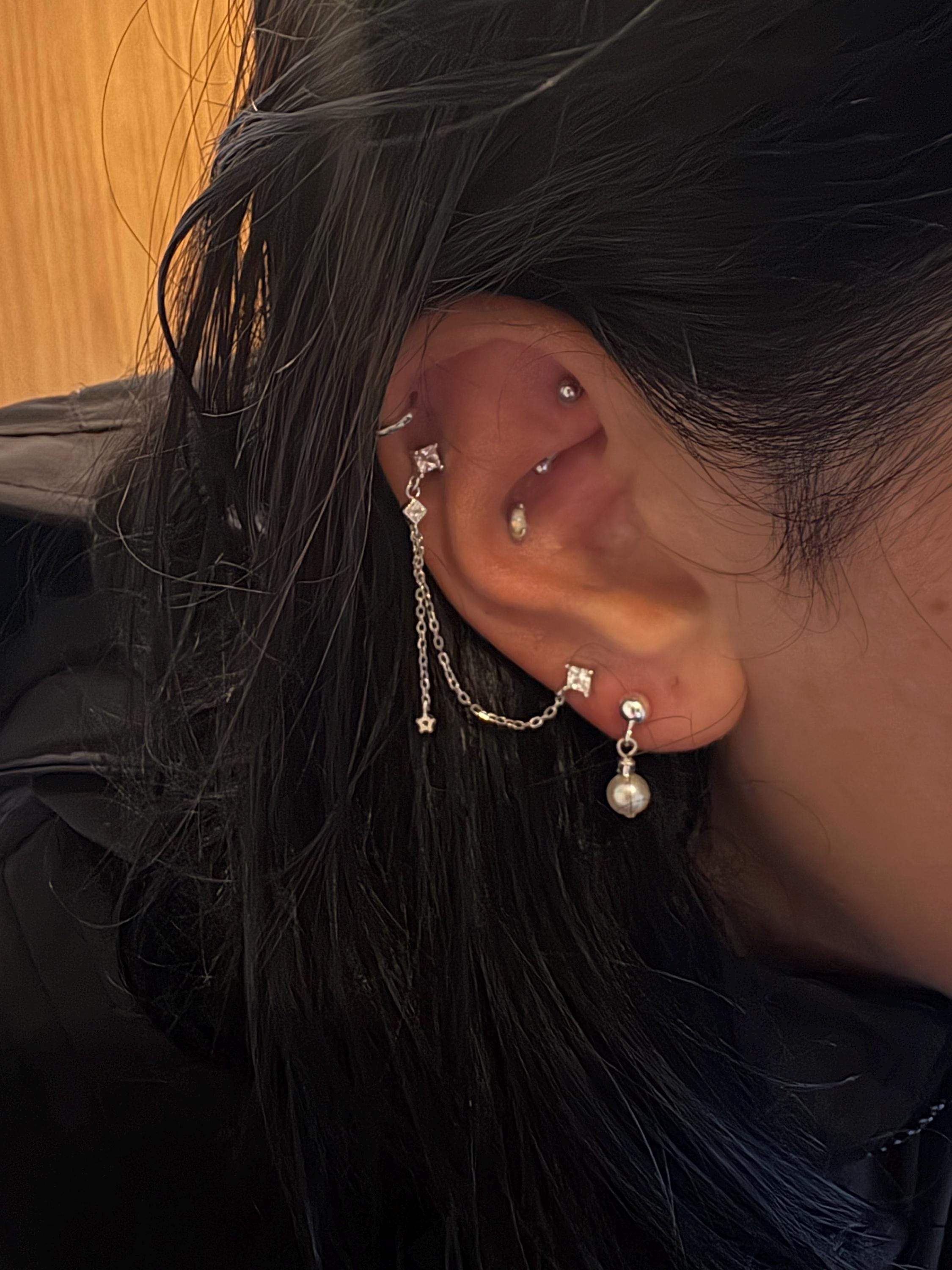 Sterling Silver tiny Freshwater pearl drop earrings; I named them "Snowdrops".