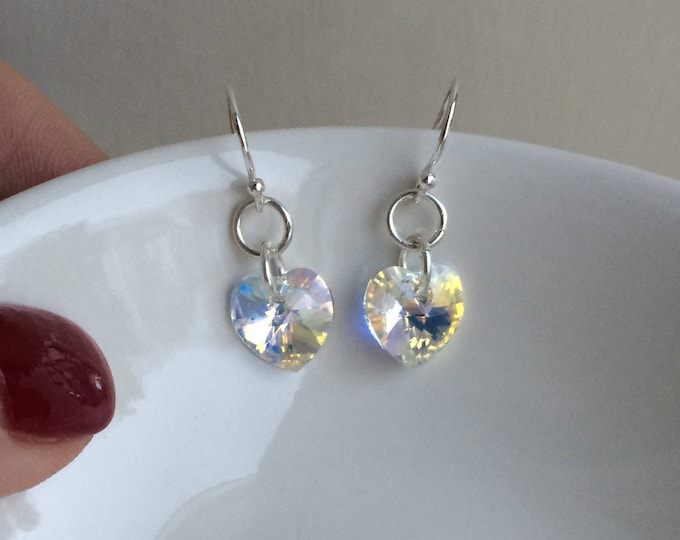 AB Swarovski crystal heart earrings on Sterling Silver or 14K Gold Fill fastenings of choice - Crystal heart jewellery gift for her mum girl